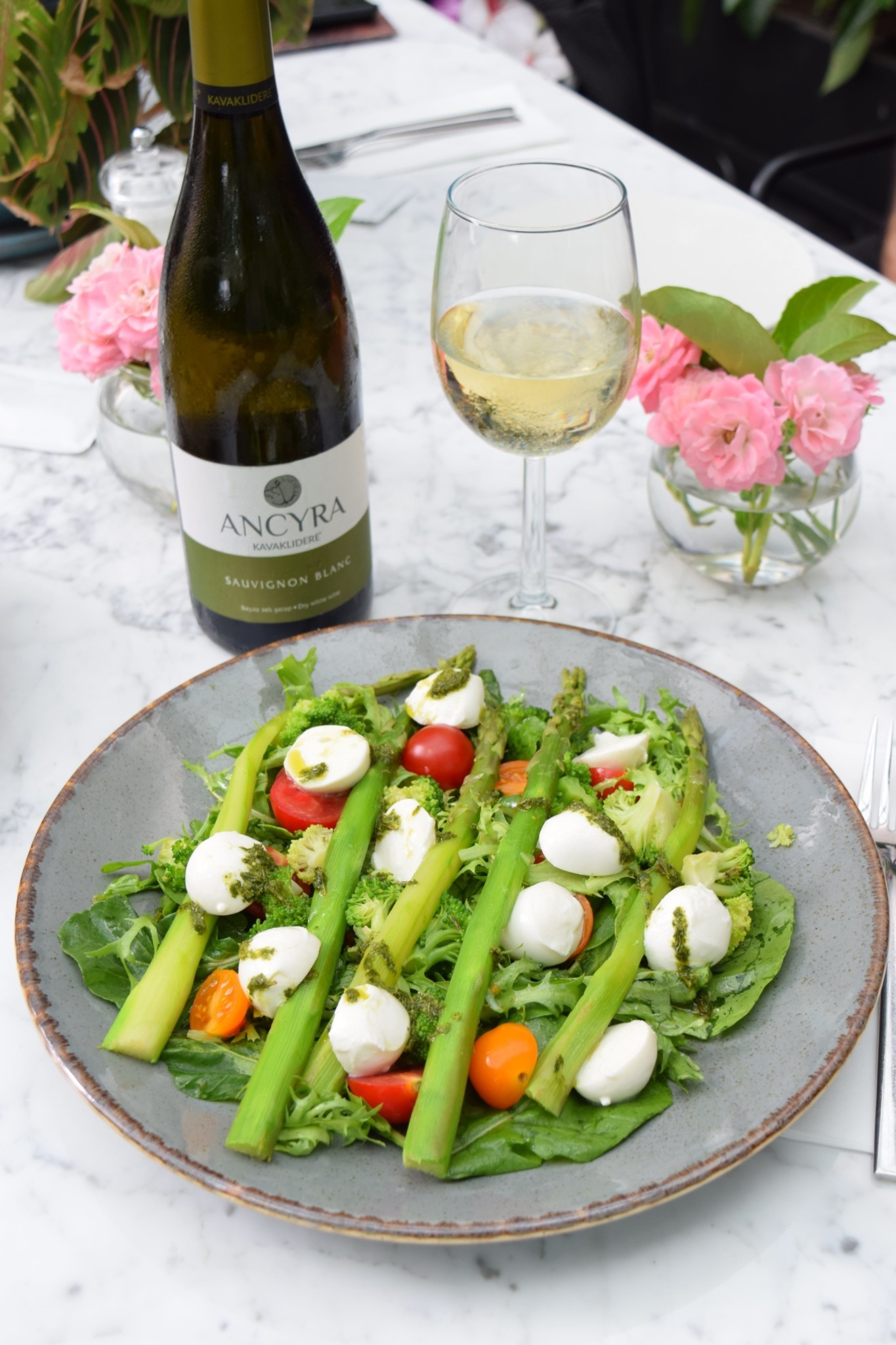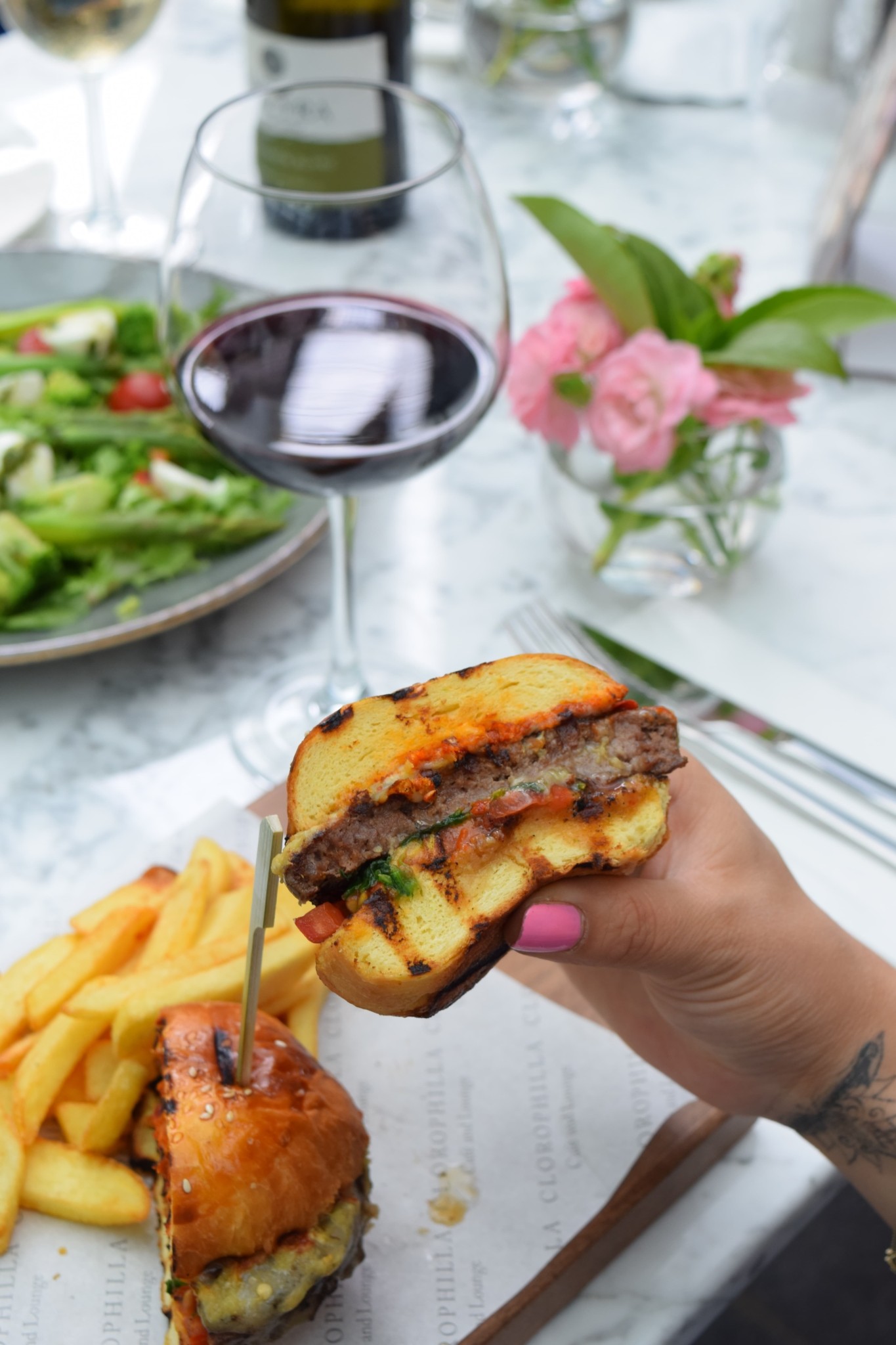 Clorophilla‘nın menüsü Akdeniz ve İtalyan ağırlıklı dünya mutfağından oluşuyor. Mekanda kahvaltı servisi de bulunuyor. Kahvaltı tabağından waffle tost çeşitlerine, granoladan omlet çeşitlerine kadar yelpaze geniş. Clorophilla‘nın yemek menüsü hazırlanırken üzerine kafa yorulduğu hemen dikkat çekiyor. Herkese hitap eden seçenekler mevcut. Özellikle böyle bir lokasyonda fiyatların makul tutulmuş olması ise bir artı. Ortaya bocconcini & kuşkonmaz salatası sipariş ettik. Hafif beslenmek isteyenler için oldukça ideal bir seçim. Bocconcini minik bebek mozzarellalar oluyor. Yanında Ancyra Sauvignon Blanc ile eşleştirdik. Yanında patates ile servis edilen ve köz patlıcan, sotelenmiş otlar, dil peyniri, domates, acılı domates ezmesinden oluşan Cloroburger’i ise kısa bir sürede imha ettik.