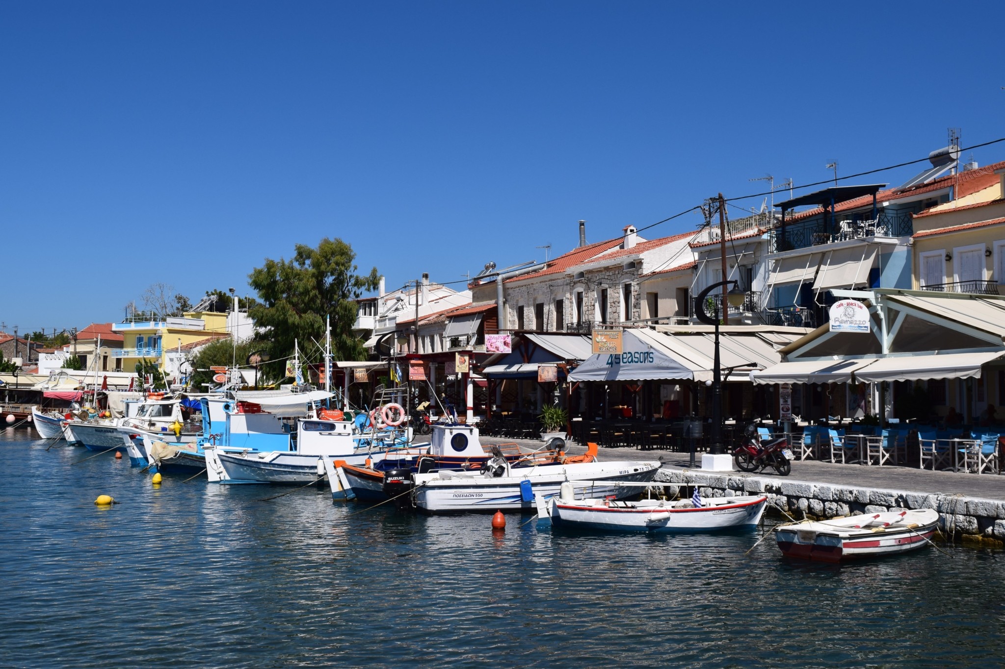 Konaklama için Kuşadası’ndan gelen feribotların yolcu indirdiği limanlardan biri olan Pythagorion‘yı seçmenizi tavsiye ederim. Burası aynı zamanda ünlü matematikçi Pythaogoras‘ın yani Pisagor‘un şehri. Bugün Samos adasının en ünlü ve en uğrak yeri olma özelliğini koruyor. Yat limanı boyunca sıralanmış restoranlar, tavernalar, kafeteryalar ve barlar bulunuyor. Hediyelik eşyalar satan dükkanların olduğu da hareketli bir çarşısı var.